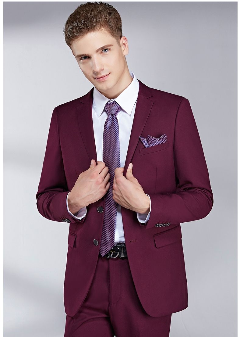 Whether guest, groomsman or groom. Luxury men's slim fit suits. Top quality mens slim fit suit in hard to find colors and patterns. Mens slim fit suits 2 piece jackets blazer pants formal business one button new. Mens 2 button slim fit wool suit with double breasted vest in burgundy.